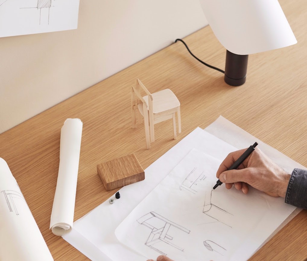 “‘Blueprint’ is a chair that very precisely incarnates the mission of Form & Refine,” Jonas explains. “It’s made of top-quality European FSC-certified wood. In addition to a sculptural expression, it has several special details. For example, there are no visible screws to break up the aesthetic or scratch the chairs when stacked.” Jonas says the backrest had to be at an angle that works for people of all sizes. It took them many attempts and countless tests. That’s why, he explains, he particularly enjoys working with product development at their in-house studio. “As soon as our products are finished in the workshop,” Jonas explains, “we have a close dialogue with our partners and manufacturers.”