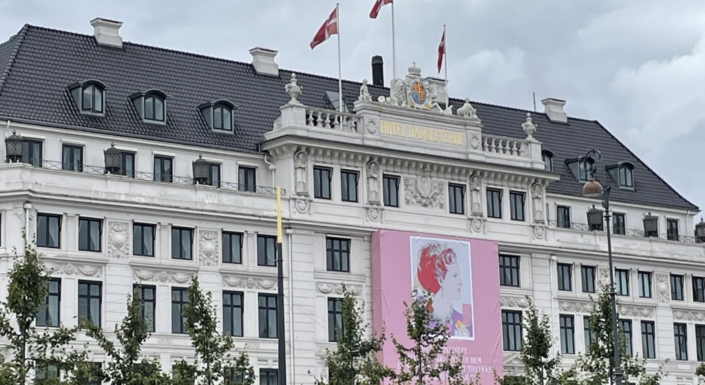 Still taking stock in Amalienborg Square, on Saturday morning I found TV2 scanning an empty balcony. It was too late, apparently, to fill their schedules back up, and the hosts had arrived at their temporary studio to go on air. At Kongens Nytorv, another studio, built to cover a full day’s events, was being repurposed to anchor one feed from London (the proclamation of Charles III) and another from Copenhagen (the jubilee of Margrethe II).